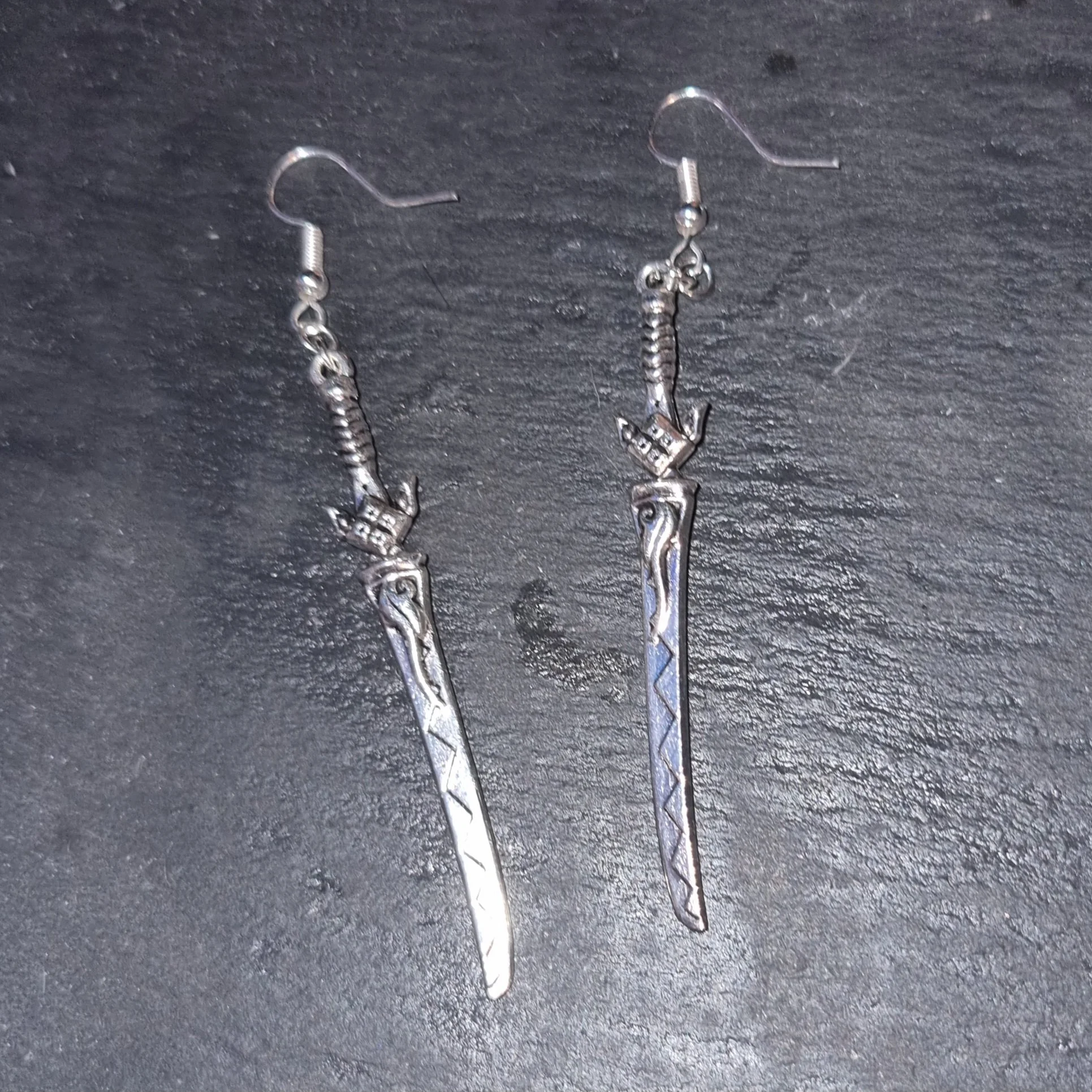 Shop › anime dagger katana sword earrings Image 1 of 2 Image 2 of 2 anime dagger katana sword earrings £6.00 Add To Cart Added!